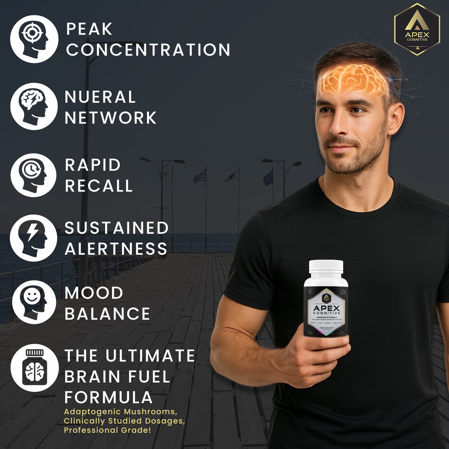 Apex Cognitive™ is the elite nootropic blend designed for high-achievers who refuse to fade into irrelevance. Reclaim your edge with our clinically-backed mushroom formula.