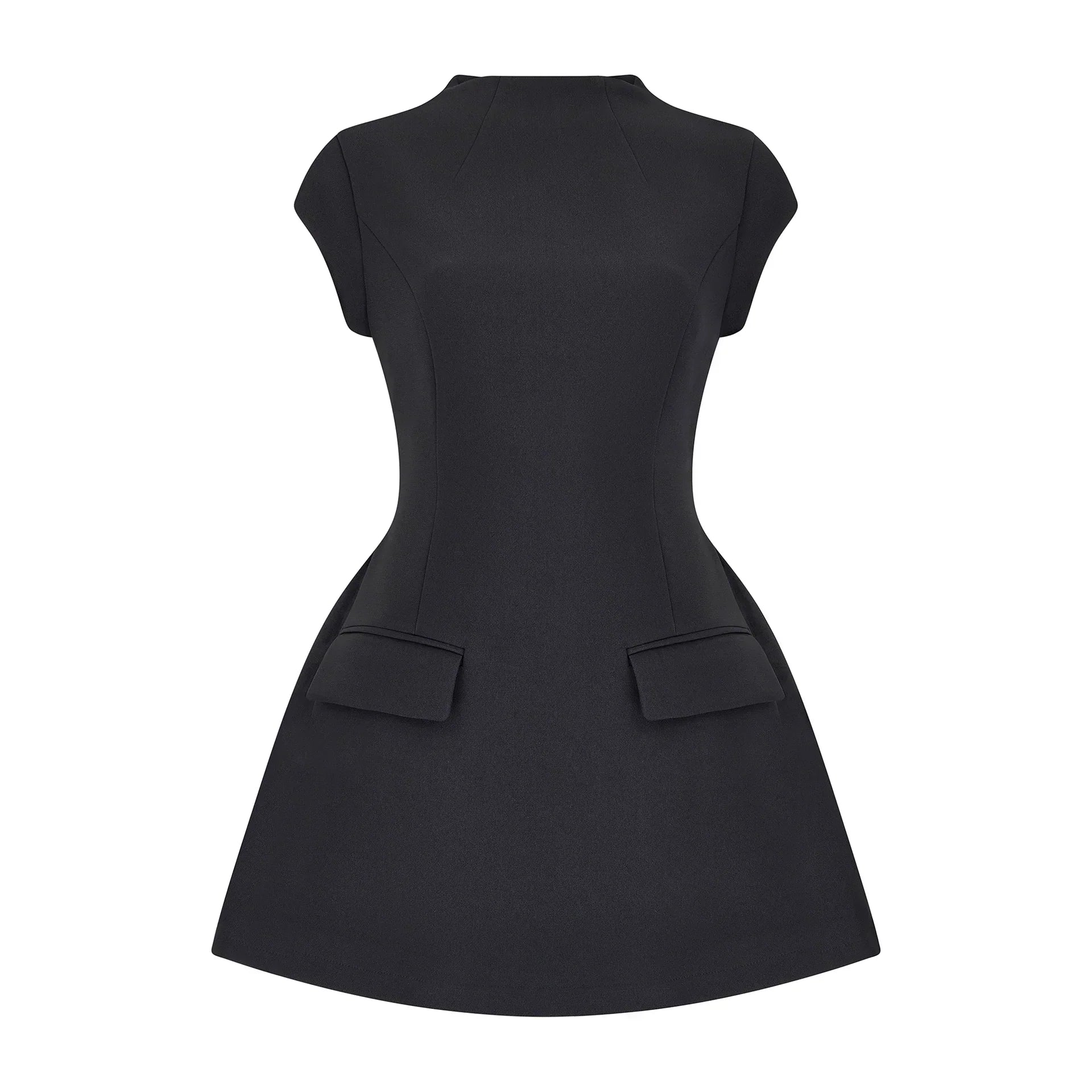 Discover the essence of timeless elegance with the Cassia Mini Dress, a sophisticated staple designed to elevate any wardrobe. This chic jet-black piece features an iconic cap sleeve and a flattering high neckline, exuding effortless style. The signature cinched waist enhances your silhouette, blending tailored structure with understated simplicity.