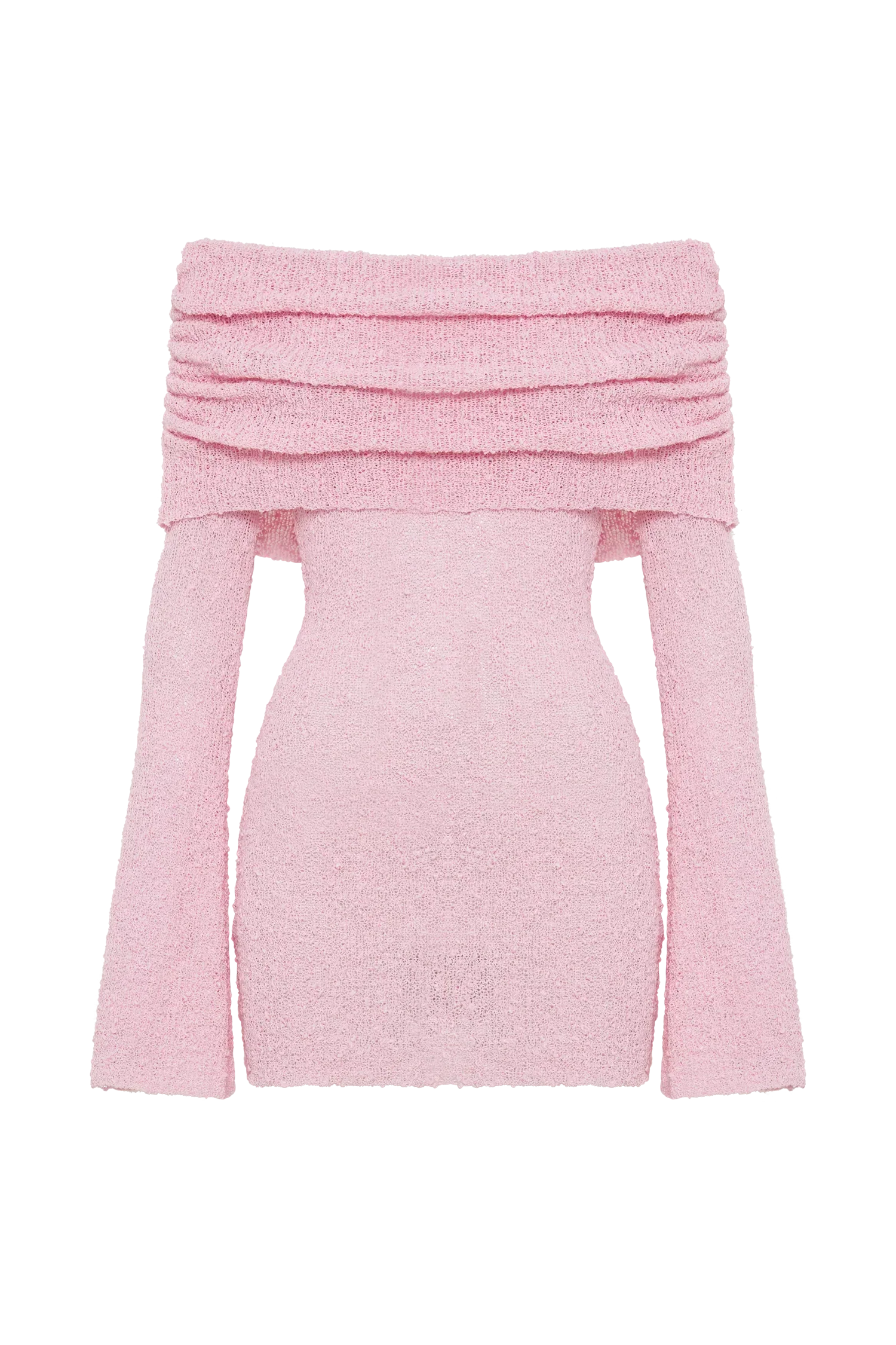 The CLEO Mini Dress brings a refined touch to any wardrobe. With its off-shoulder, strapless neckline, this dress emphasizes the shoulders in a contemporary, elegant way. Long sleeves and a delicate overlay add subtle sophistication, while the elasticated top edge provides a secure, comfortable fit. Made with a soft boucle knit, the dress offers a luxurious feel and effortless charm. Unlined for a lightweight, breathable design, the CLEO Mini Dress is versatile and perfect for warm-weather occasions. Style it with heels for a night out or pair with sandals for a relaxed day look—this piece radiates modern allure and timeless appeal.